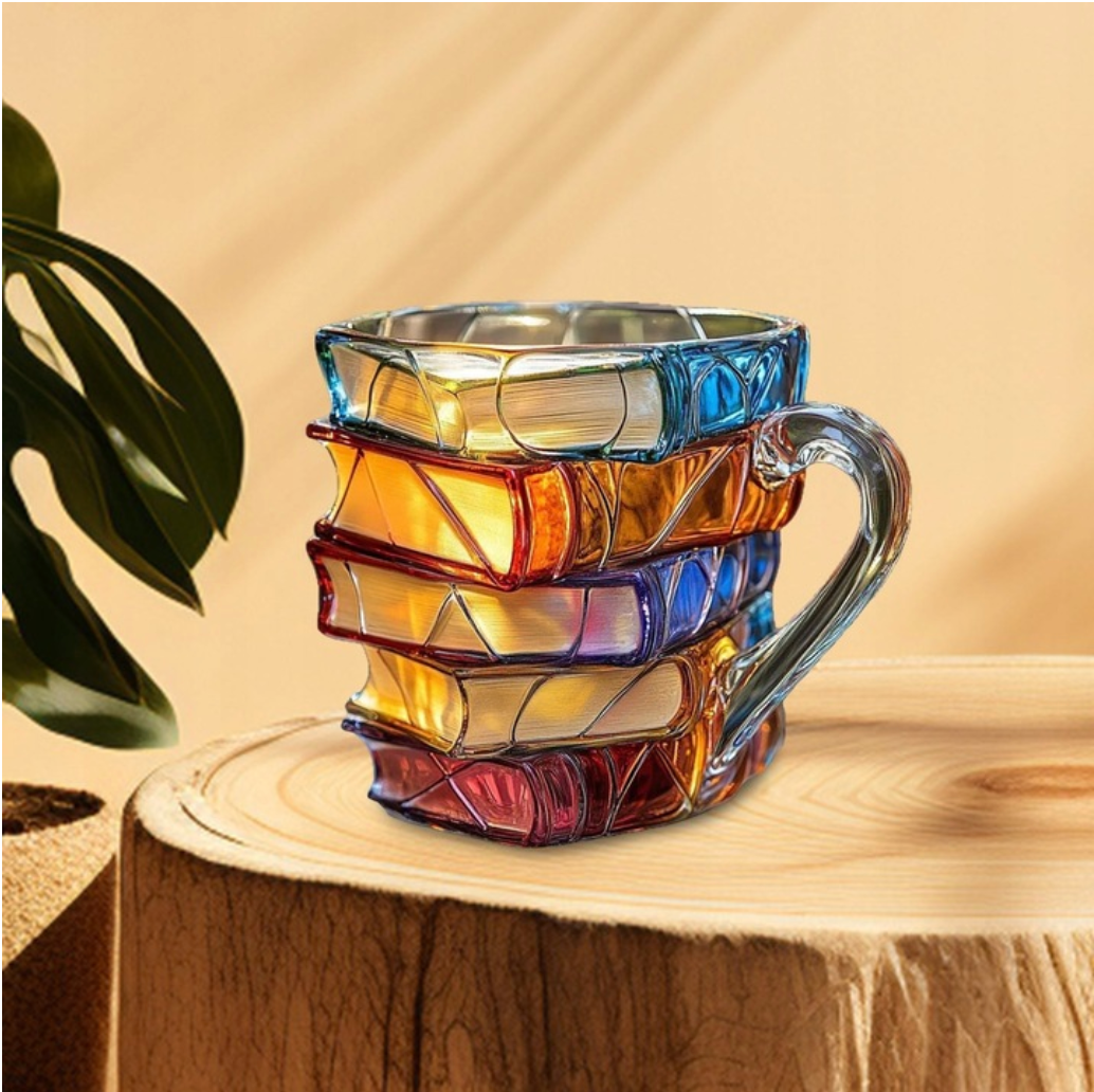 A Fénylő Könyvek Bögre a kreativitást és a történetek iránti szeretetet ünnepli. A könyvek egymásra helyezett formája a tudás és az inspiráció szimbóluma, amely beragyogja a napot.