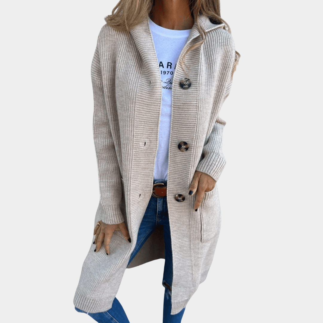 Képzeld el a hűvös estéket, amikor szeretnél abszolút kényelemben lenni, miközben megőrzöd a természetes eleganciát. A hosszú szabás és a diszkrét részletek révén Monica az a kardigán, amely bármelyik öltözékedet kifinomult megjelenéssé varázsolja.